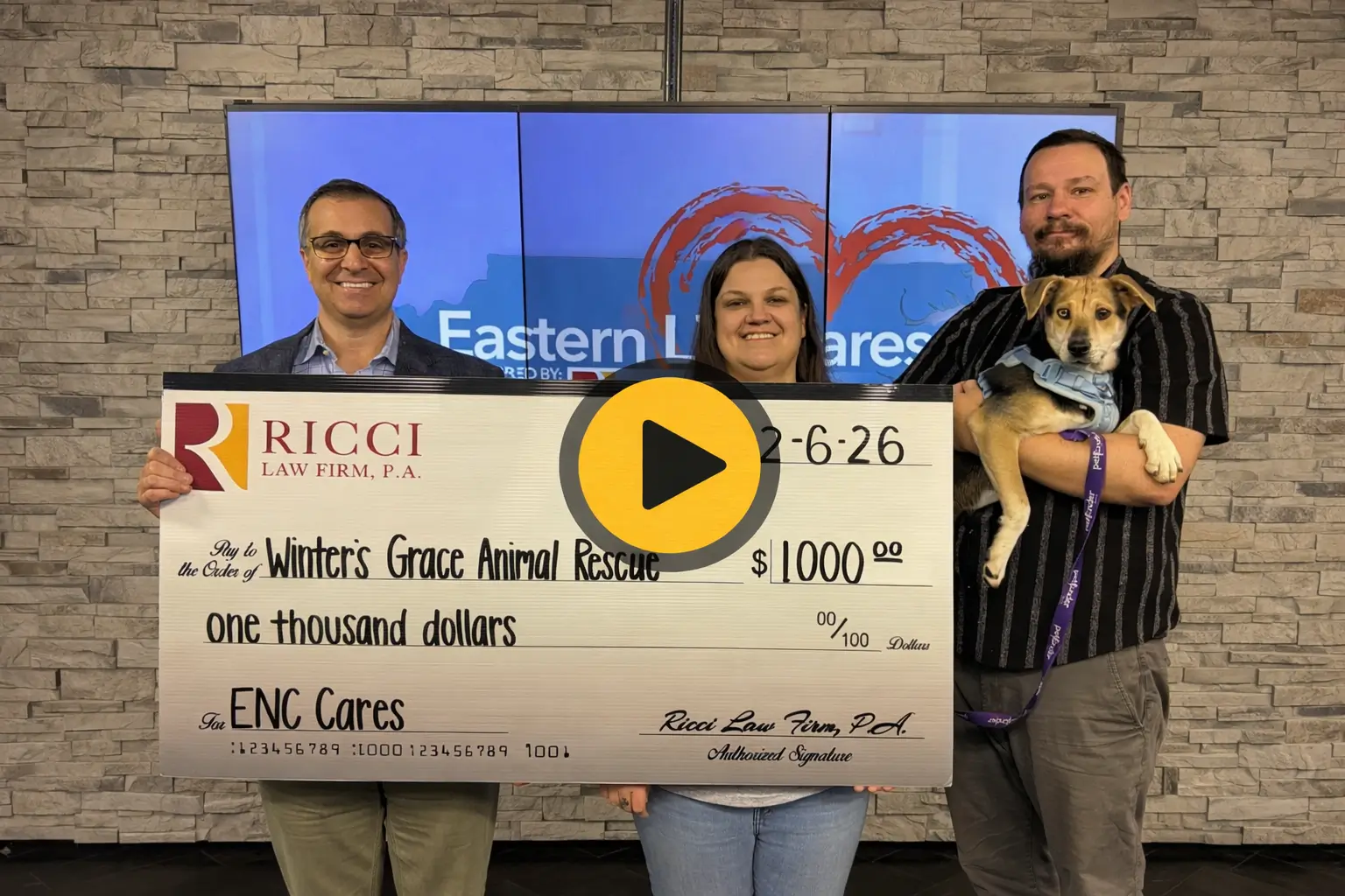 Each month, Ricci Law Firm Injury Lawyers awards $1,000 to a deserving organization in both the Eastern and Triangle regions of North Carolina. The Eastern NC Cares award is hosted by NBC affiliate WITN, and the Triangle NC Cares award is hosted on ABC affiliate WTVD. Ricci Law Firm is proud to support these impactful organizations!